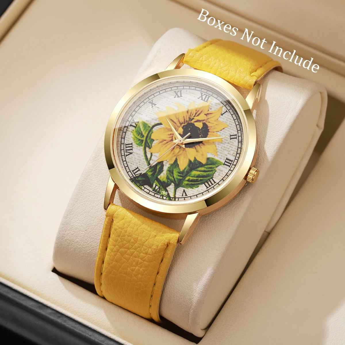 Birthday Gift Watch Fashion Casual Roman Scale Sunflower Dial Classic Elegance Quartz Watch ( With Original Box)