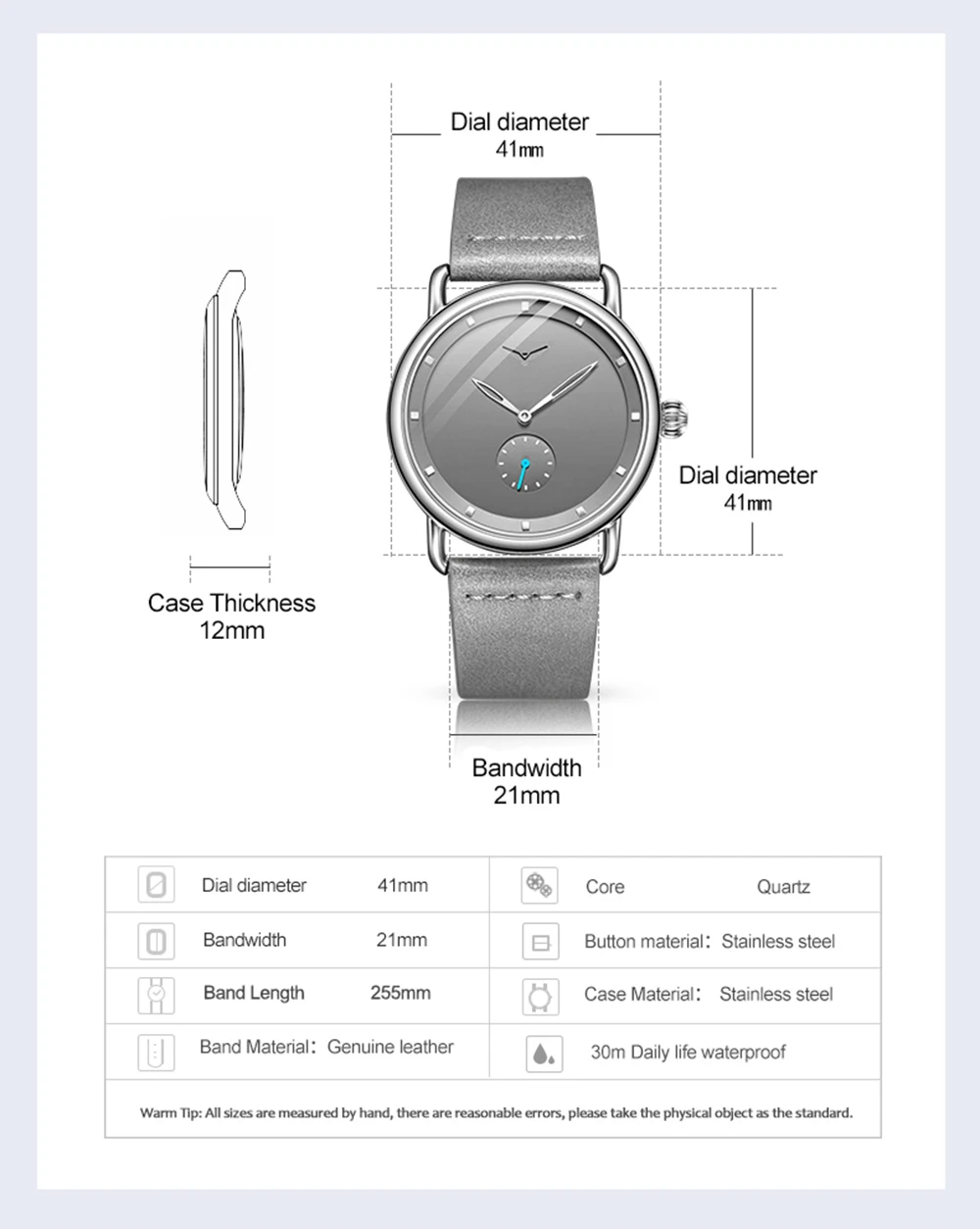 • Casual watch men quartz wristwatch simple waterpoor leather man watch Luxury watches