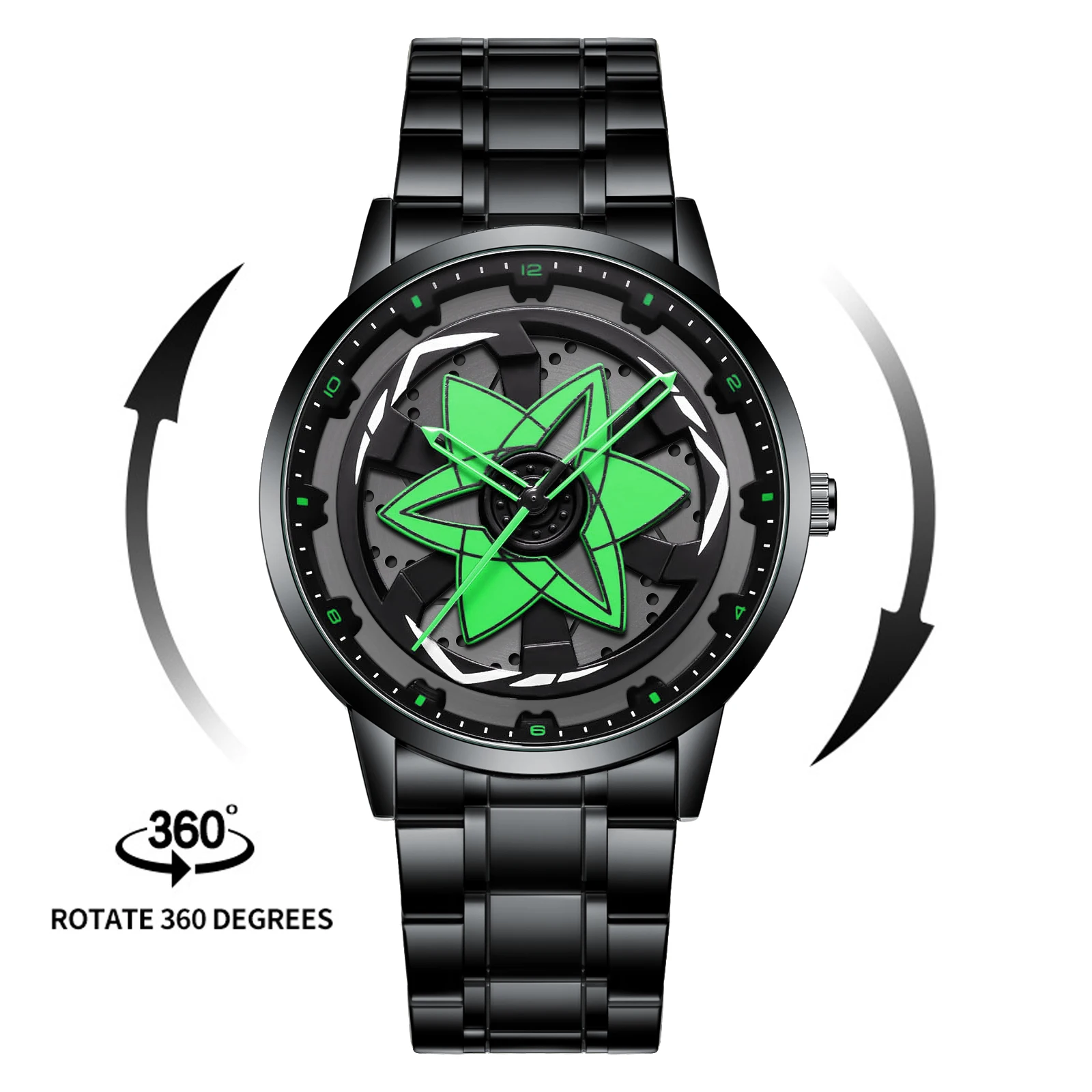 2025 New Watch Car Series Creative Rotating Quartz Movement Sports Style Black Stainless Steel Clock Men Couple Gift Wrist Watch
