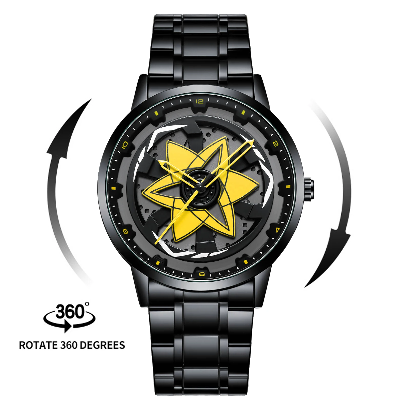 • 2025 New Watch Car Series Creative Rotating Quartz Movement Sports Style Black Stainless Steel Clock Men Couple Gift Wrist Watch